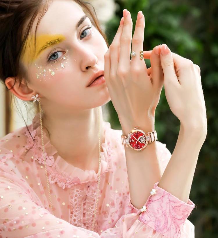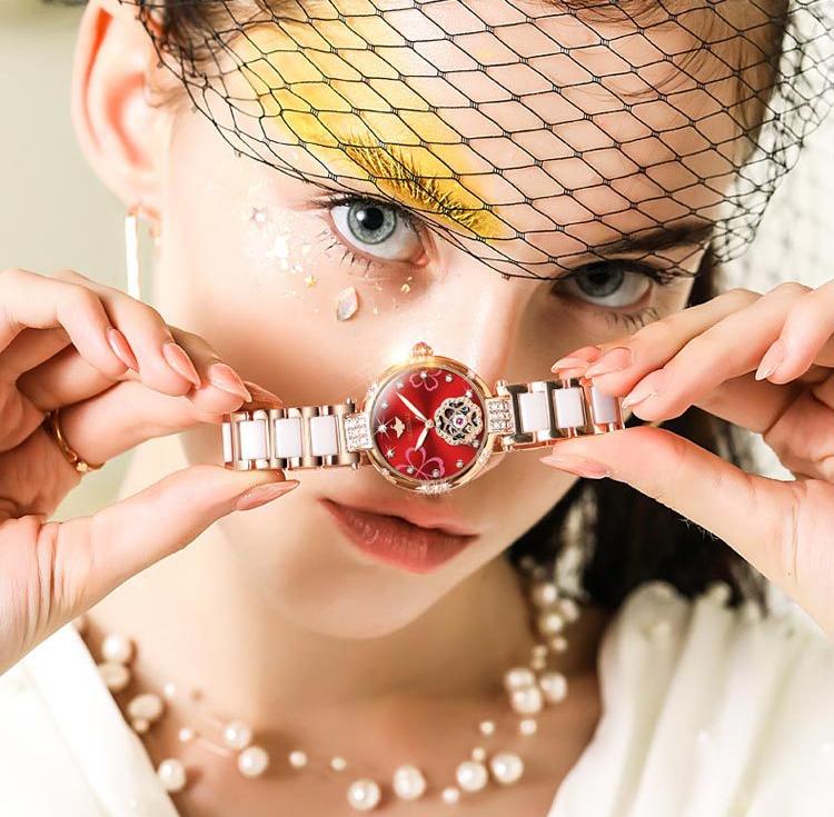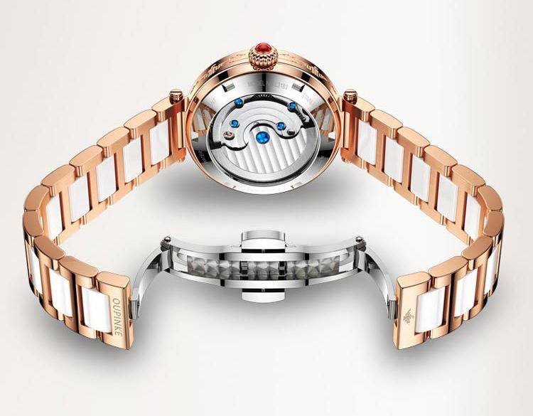 - Skeleton Tourbillon Movement: A meticulously crafted tourbillon mechanism within a skeleton design, showcased in an elegant four-leaf clover motif for both charm and precision.