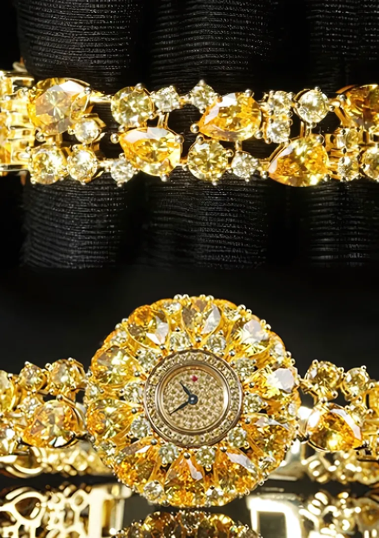 The crystal is made of sapphire, offering excellent scratch resistance to maintain the watch's beauty and durability. With a water resistance depth of 50 meters, you can wear it confidently in daily life without worrying about water exposure. This fully gemstone-set watch perfectly interprets a luxurious lifestyle, making it suitable for various occasions, allowing you to showcase your unique charm and taste whether for everyday wear or special events.