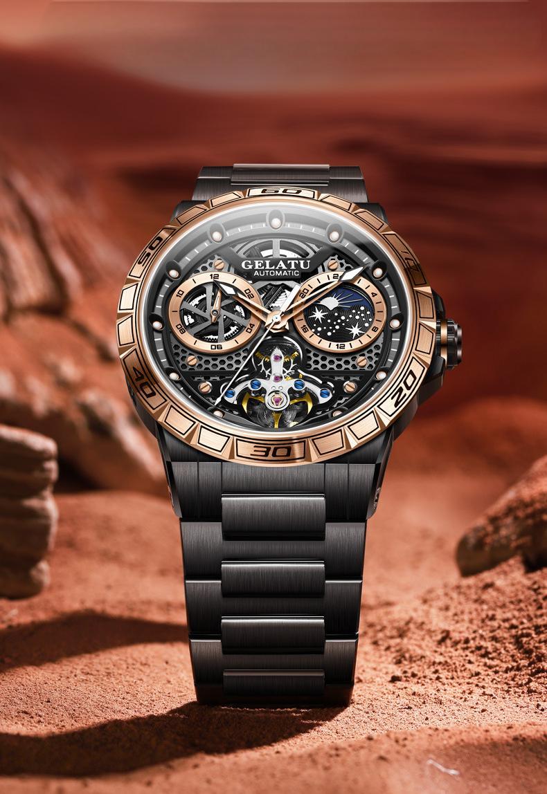 This high-end automatic mechanical watch is designed for men who value both quality and style. Featuring a fully skeletonized dial, it showcases the intricate mechanical structure, exuding sophistication and individuality. Equipped with an original automatic movement, it ensures accurate and stable timekeeping, delivering top-tier performance.
